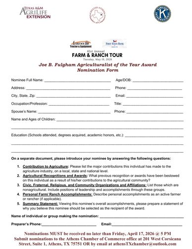 *Joe B. Fulgham Agriculturalist of the Year: Bryan Forester, whose lifelong commitment to the cattle industry has made a lasting impact both here in Henderson County and across the nation. From sunup to sundown, Bryan has dedicated his career to serving ranchers through honest work, strong advocacy, and helping the next generation find their place in agriculture.